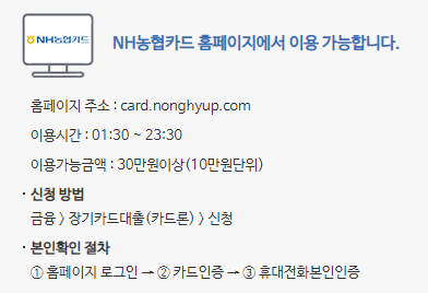 농협카드 카드론 신청방법 및 주의사항